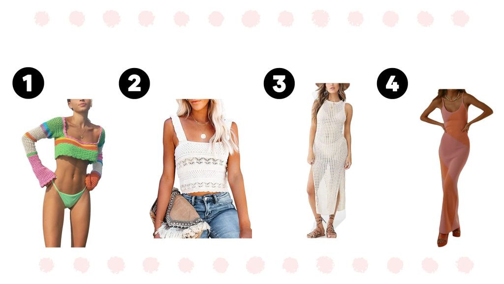 1.Y2K Knit 2. Knit Cami 3. Crochet Cover up 4. Knit Bodycon